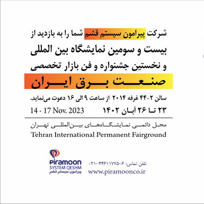 با افتخار اعلام میداریم شرکت پیرامون سیستم قشم حضوری مثمر ثمر و قابل توجهی در نمایشگاه بیست و سومین نمایشگاه بینالمللی صنعت برق خواهد داشت.