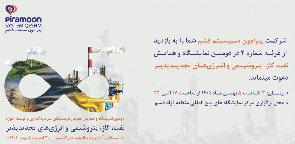 برای اولین بار شرکت پیرامون سیستم قشم جهت ایجاد ارتباط بیشتر و بهتر با کارفرمایان و معرفی مستقیم محصولات دانش بنیان خود در دومین نمایشگاه و همایش نفت، گاز، پتروشیمی و انرژیهای تجدید پذیر حضور خواهد داشت.